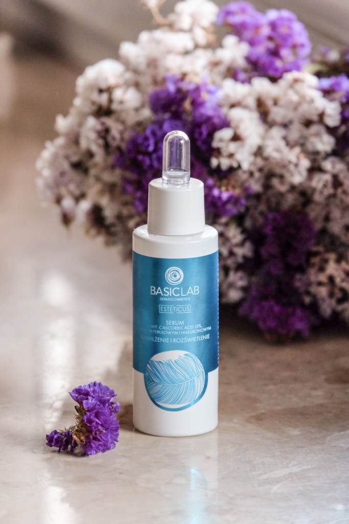 Jeśli chodzi o markę Basiclab i ich sera z witaminą C, to używałam też serum zielonego z 15% 3-O-Ethyl Ascorbic Acid i różowego z 10% Ascorbyl Glucoside, ale u mnie najlepiej sprawdziło się właśnie to niebieskie (uwaga, może podrażniać!). Wybrałam je wypełniając quiz na stronie producenta: https://basiclab.shop/blog/swiadomie-o-pielegnacji/witamina-c-sprawdz-ktore-serum-wybrac – polecam!